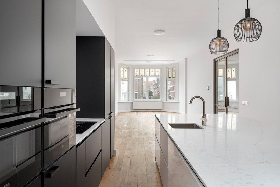 De moderne open keuken is uitgerust met hoogwaardige inbouwapparatuur, zoals een inductiekookplaat met geïntegreerde afzuiging, quooker, oven, koel-/vriescombinatie en vaatwasser. Vanuit de keuken stap je direct het balkon aan de achterzijde op. In de hal bevindt zich daarnaast een apart toilet.