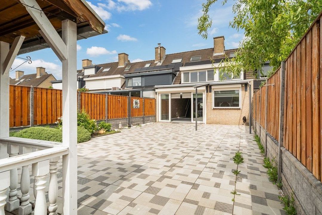 Je betreedt de woning via de verzorgde voortuin. De entree leidt naar een nette hal met toegang tot het toilet en de inpandige garage, ideaal voor fietsen, opslag of als hobbyruimte. De ruime, lichte keuken aan de voorzijde is praktisch ingericht en voorzien van modern inbouwapparatuur, perfect voor zowel de dagelijkse maaltijd als een uitgebreid diner. De tuingerichte woonkamer is royaal opgezet, voorzien van vloerverwarming, en ontvangt volop natuurlijk licht dankzij grote raampartijen en een schuifpui. Aangrenzend vind je een gezellige extra ruimte, ideaal als leeshoek, thuiskantoor of speelhoek. Via de moderne schuifpui heb je direct toegang tot de diepe achtertuin van maar liefst 17,8 m diep. Deze fraai aangelegde en goed onderhouden tuin beschikt over een ruim tuinhuis met overkapping én een handige achterom.