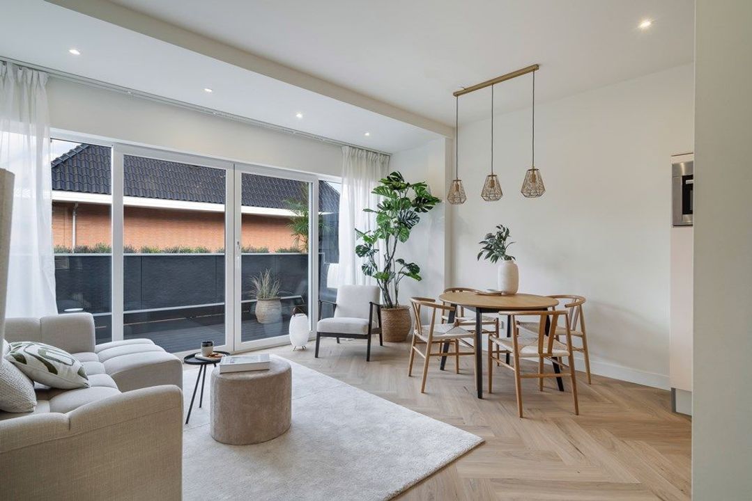 Via de eigen trapopgang bereik je de eerste verdieping, waar de overloop toegang biedt tot de praktisch ingedeelde vertrekken. De woonkamer beschikt over een luxe inbouwkeuken met koelkast, vriezer, inductiekookplaat en vaatwasser. Door de grote raampartijen in de woonkamer, beschikt de woning over veel daglichttoetreding en op het ruime terras op het zuiden kan je in de ochtend- en avondzon in de rust genieten. Via de overloop kom je langs het separate toilet en is er toegang tot de ruime hoofdslaapkamer met luxe afgewerkte ensuite badkamer, welke overigens ook via de overloop te betreden is. De badkamer beschikt over een inloopdouche, wastafel en kastruimte. Ook beschikt de eerste verdieping over een tweede volwaardige slaapkamer, die ook prettig in te delen is als werkruimte.